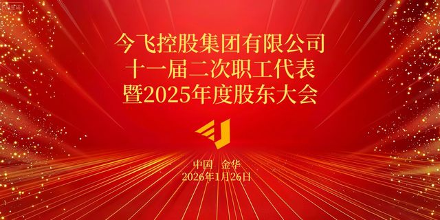2026年1月26日,今飞控股集团有限公司十一届二次职工代表大会暨2025年度股东大会在集团文化中心大礼堂胜利召开。今飞集团董事长兼总裁葛炳灶及集团董事会成员、公司领导班子等管理层,与来自金华总部及国内外各生产基地的近200名职工代表、股东代表齐聚一堂,共商发展大计。